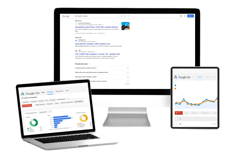 Google Ads Management involves a live, dynamic auction, controlled by ever-changing algorithms. To stay effective, Google Ads campaigns require constant attention and updating to maximize success. At Xi Digital, in addition to receiving a fully customized and uniquely catered Ad account, you get the full support of our expert PPC account managers in Toronto & Vaughan. As a recognized Google Partner, our PPC marketing team is trained directly by Google FOR Google, as well as other top industry strategists and teachers, meaning we are trained and up to date on campaign optimization and best practices, allowing for maximum budget efficiency and ROI.