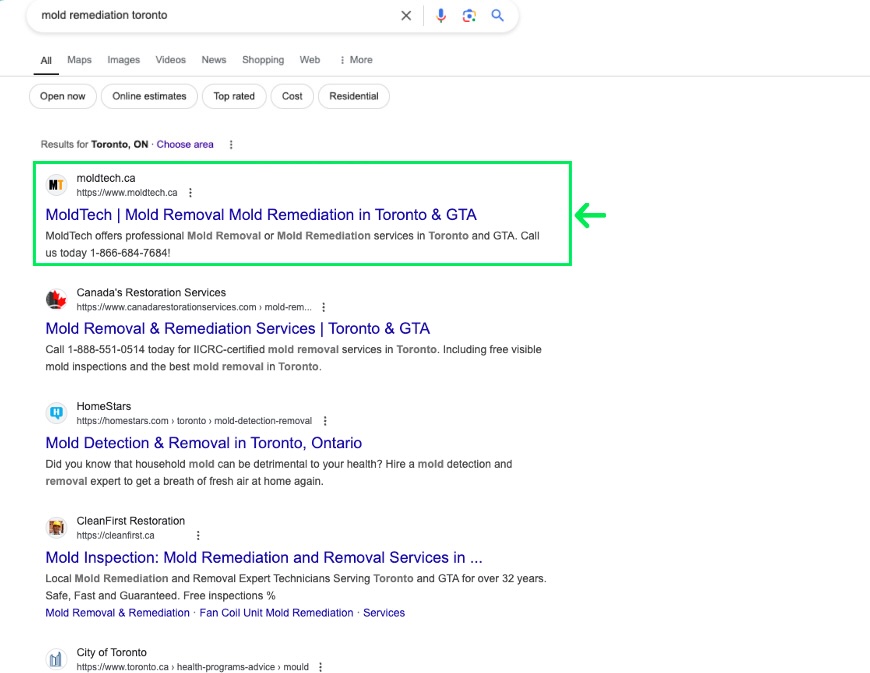 With a new website launched, Xi Digital created a tailored marketing strategy that encompassed Search Engine Optimization and Google Ads, which was designed to maximize MoldTech’s visibility across the Greater Toronto Area.